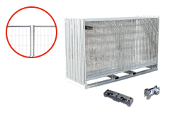 Komplett byggstängsel med transportpall. Lösning för att göra byggarbetsplatsen säker från skadegörelser och stölder. 19kg, lätthanterlig och tung nog.