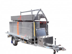 En lättbyggd ställning i lättmetall komplett med släpvagn.